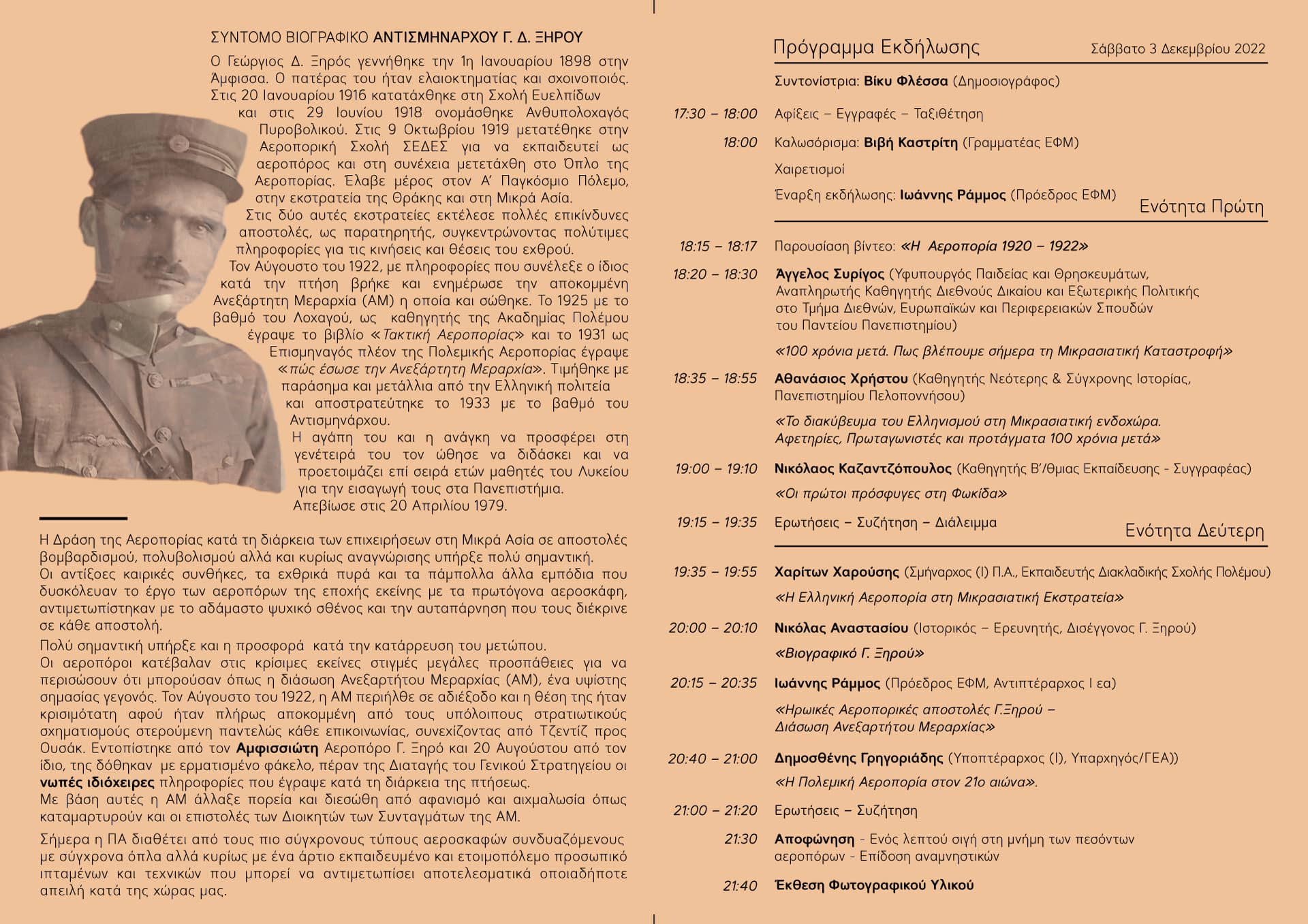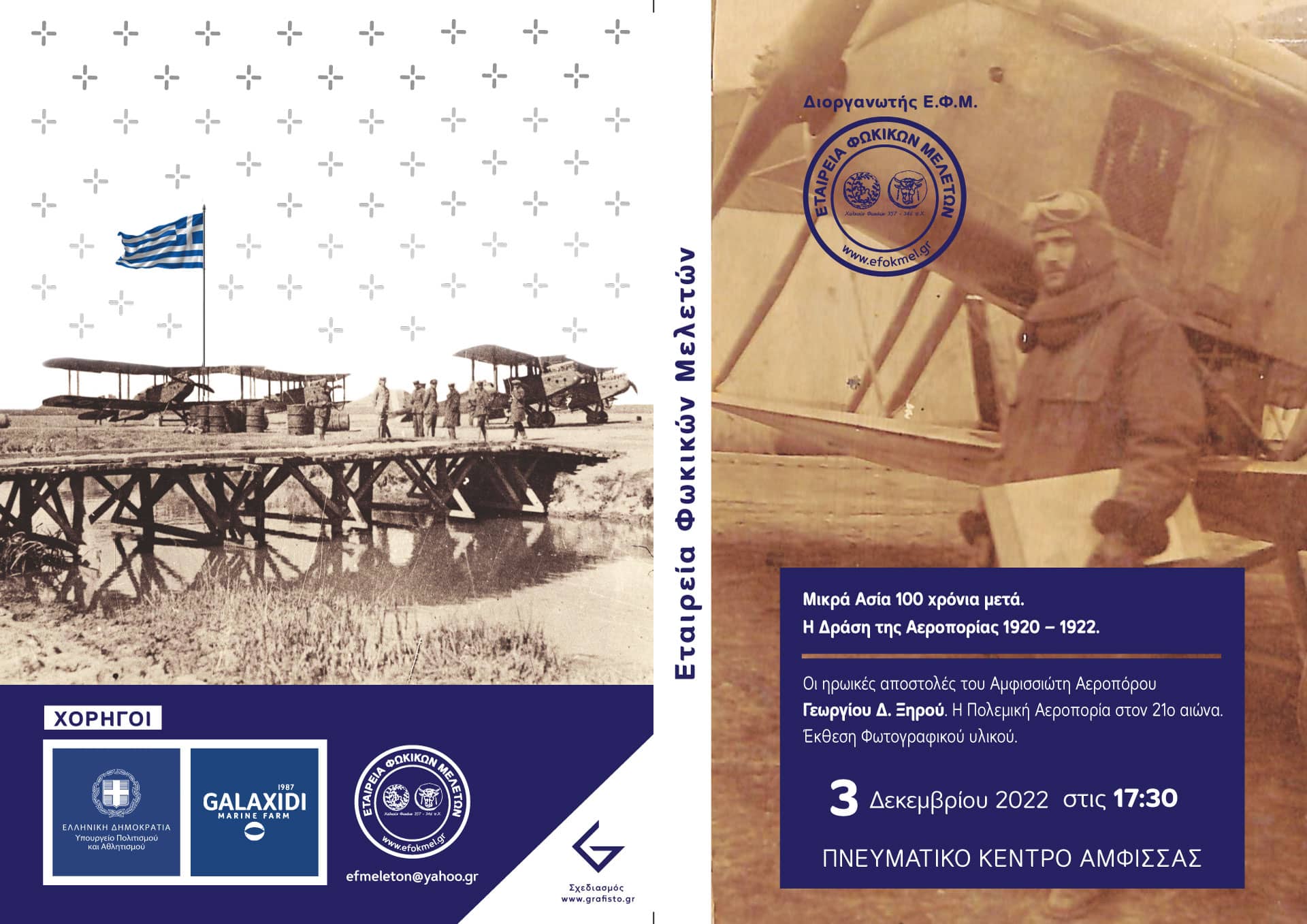 Μικρά Ασία 100 χρόνια μετά. Η Δράση της Αεροπορίας 1920 – 1922. Οι ηρωικές αποστολές του Αμφισσιώτη Αεροπόρου Γεωργίου Δ. Ξηρού. Η Πολεμική Αεροπορία στον 21ο αιώνα. Έκθεση Φωτογραφικού υλικού